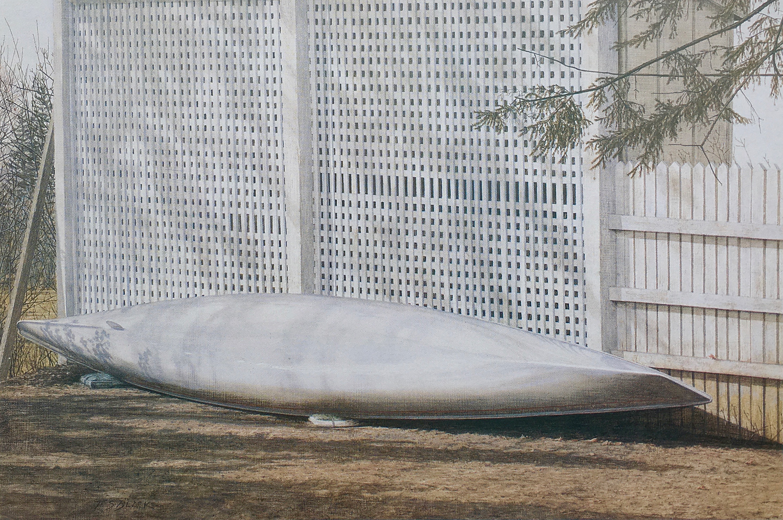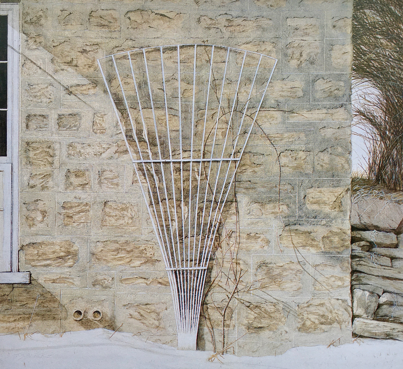 Furthermore, the title perplexes and entices us with its snippet from the general confession from The Book of Common Prayer: “We have followed too much the devices and desires of our own hearts.” Suddenly the eye of the theodolite becomes less casual and accidental and more probing with assessment and meaning. With this painting we also come to a completion of the representation of the constructed and contained, of walls and buildings, tools and toys, high tech roads and instruments set in nature. The moment of measuring, “the measure of all things,” has been approached by the counterpoise between being the observer and being observed.